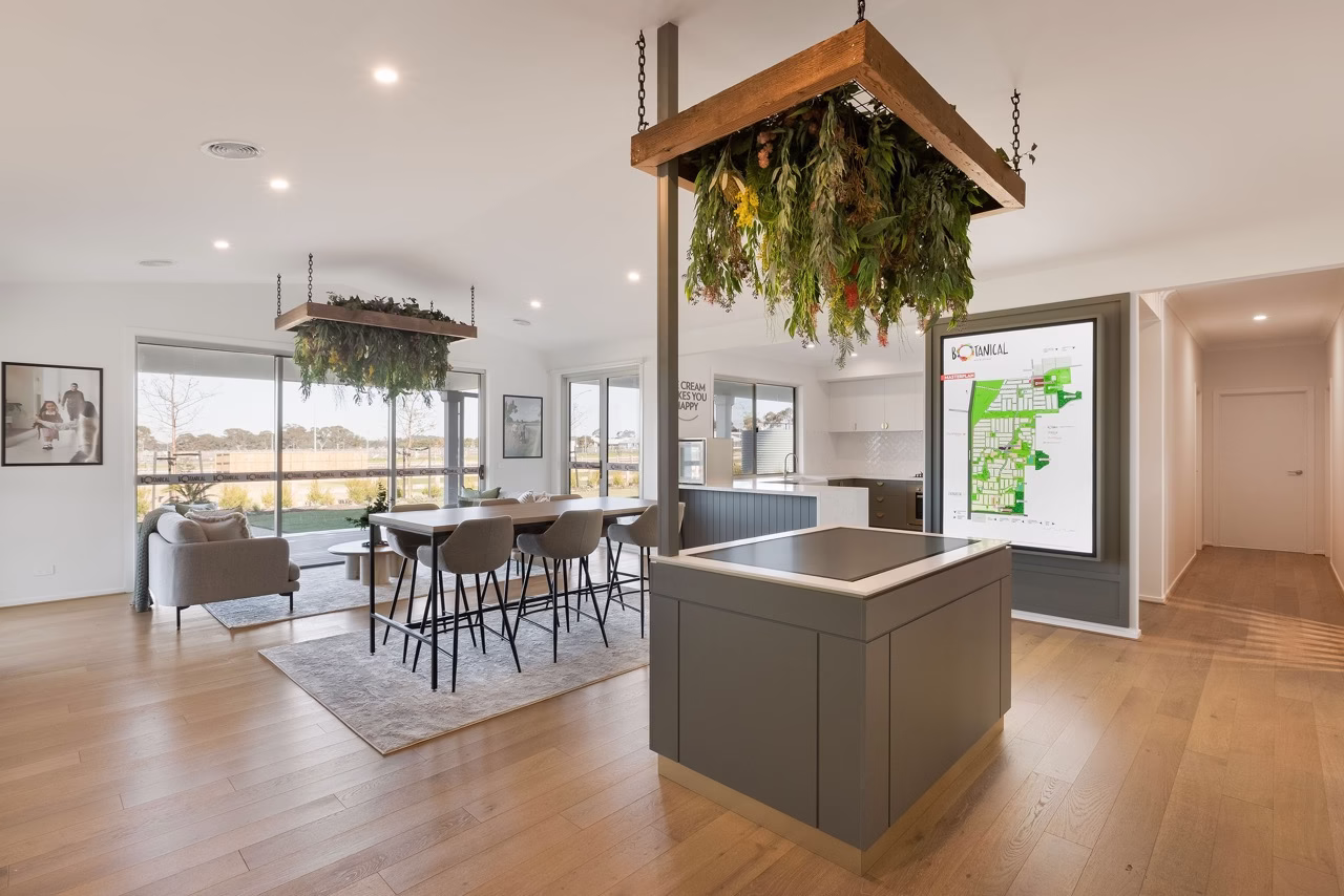 Sometimes a sales office in a home feels like a compromise, but not at the Botanical sales office! We worked with the builder to open up the space, allowing us to have a more expansive design and fit-out that was not constrained by a typical sales office in a home setting.